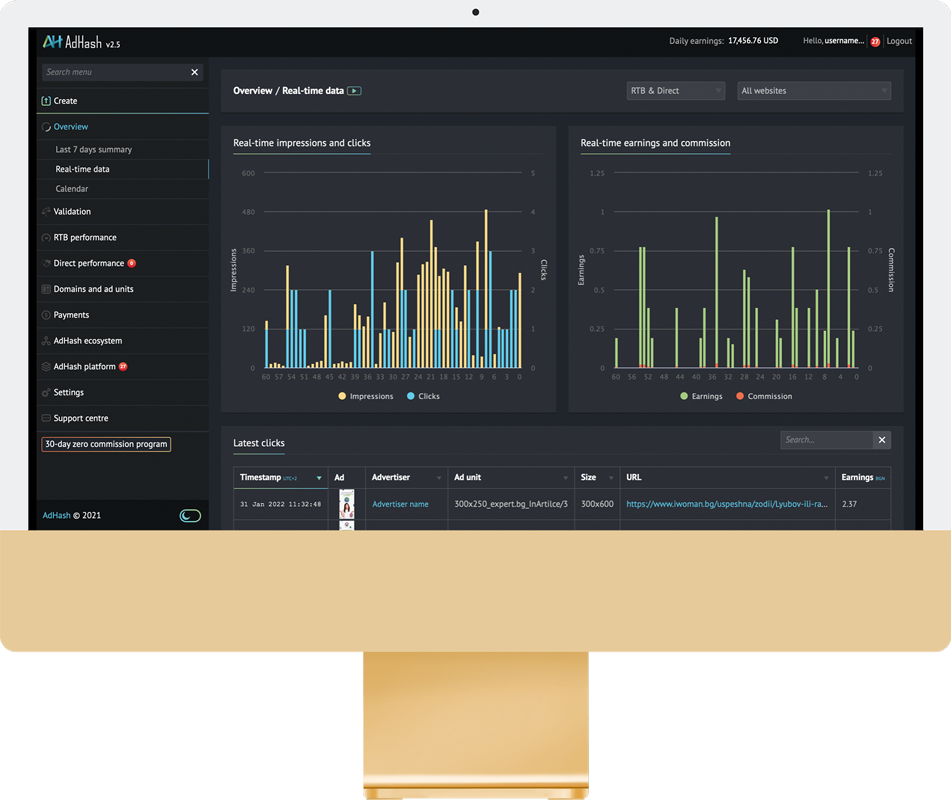 Explore granular real-time reports broken down by over 30 different parameters, including advertisers, locations, languages, timing, devices, unique views,